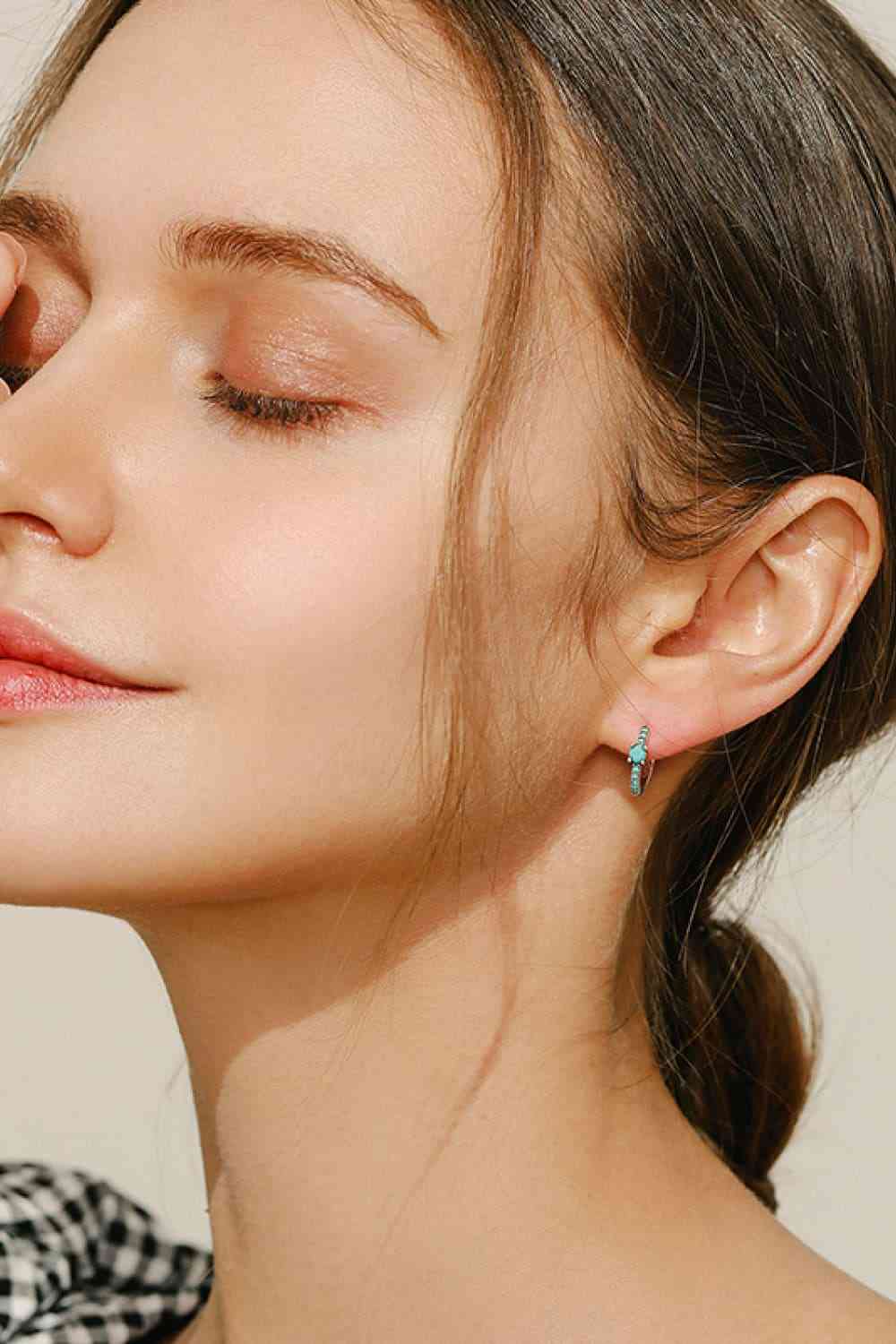 925 Sterling Silver Artificial Turquoise Huggle Earrings