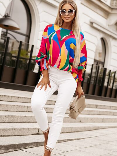 Abstract Lantern Sleeve Blouse